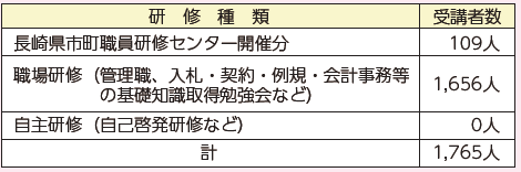 長崎県市町職員研修センターや長崎県中都市経営研究会で行われる研修を受講し、職員の資質向上による仕事の効率化および人材の育成を図っています。