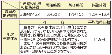 職員の勤務時間や休暇などに関しては、市の条例・規則で定められています。