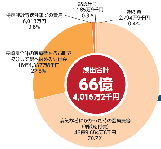 全体の7割以上を医療費などの給付である保険給付費が占めています。