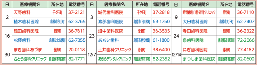 ■休日在宅当番歯科医(診療時間…午前9時~正午)