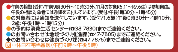※当番医などは急に変更になる場合があるため、各ホームページでご確認ください。