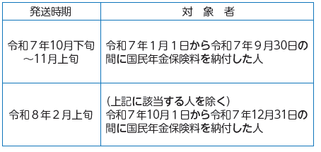 社会保険料(国民年金保険料)控除証明書が送付されます。