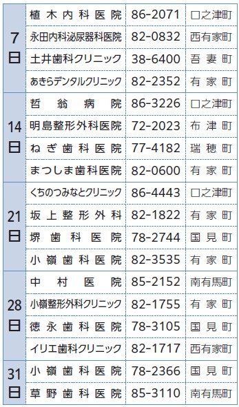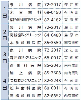 くらし 休日在宅当番(歯科)医 45/46 前の記事 次の記事 発行日 : 2025年12月01日 自治体名 : 長崎県南島原市 広報紙名 : 広報南島原 令和7年12月号 当番医/診療時間:午前9時~午後5時 当番歯科/診療時間:午前9時~正午 ※変更になる場合がありますので、必ずお電話でご確認ください。 ■令和7年12月 ■令和8年1月 Tweet シェアする 12月市民カレンダー その他のお知らせ(広報南島原 令和7年12月号)