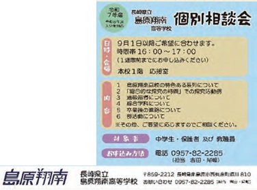 島原翔南高校の系列や探究活動、通級指導などご要望に応じてお話しします。