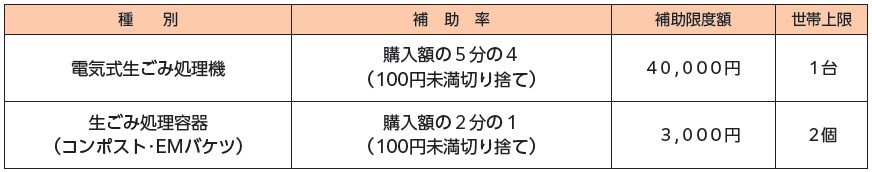 (3)電気式処理機は5年間、処理容器は3年間、補助金交付を受けた人が同一世帯にいないこと。