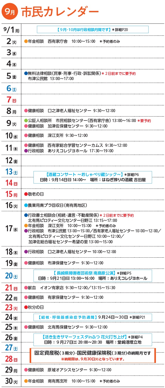 くらし 9月市民カレンダー 35/37 前の記事 次の記事 発行日 : 2025年09月01日 自治体名 : 長崎県南島原市 広報紙名 : 広報南島原 令和7年9月号 第3回南島原市議会定例会は、9月2日(火)に招集される予定です。 Tweet シェアする おいしく食べよう!南島原 休日在宅当番(歯科)医