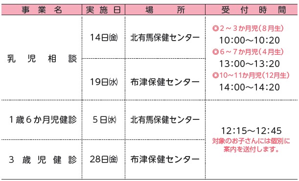 ※対象年齢などは別途配布している「母子保健事業のお知らせ」をご覧ください。