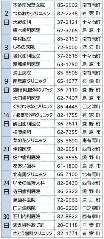 くらし 休日在宅当番(歯科)医 43/45 前の記事 次の記事 発行日 : 2025年11月01日 自治体名 : 長崎県南島原市 広報紙名 : 広報南島原 令和7年11月号 当番医:診療時間…午前9時~午後5時 当番歯科:診療時間…午前9時~正午 ※変更になる場合がありますので、必ずお電話でご確認ください。 ■令和7年11月 Tweet シェアする 11月市民カレンダー 戦後80年 南島原市戦没者追悼式