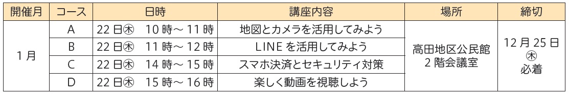 その他:当日はレンタルスマートフォン(iPhone)を貸与して講座を行います。講座ではアプリの使い方を学ぶので、普段iPhone以外を使用されている方もきちんと学ぶことができます。