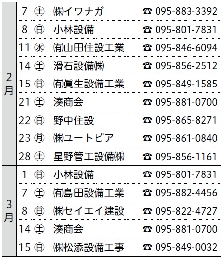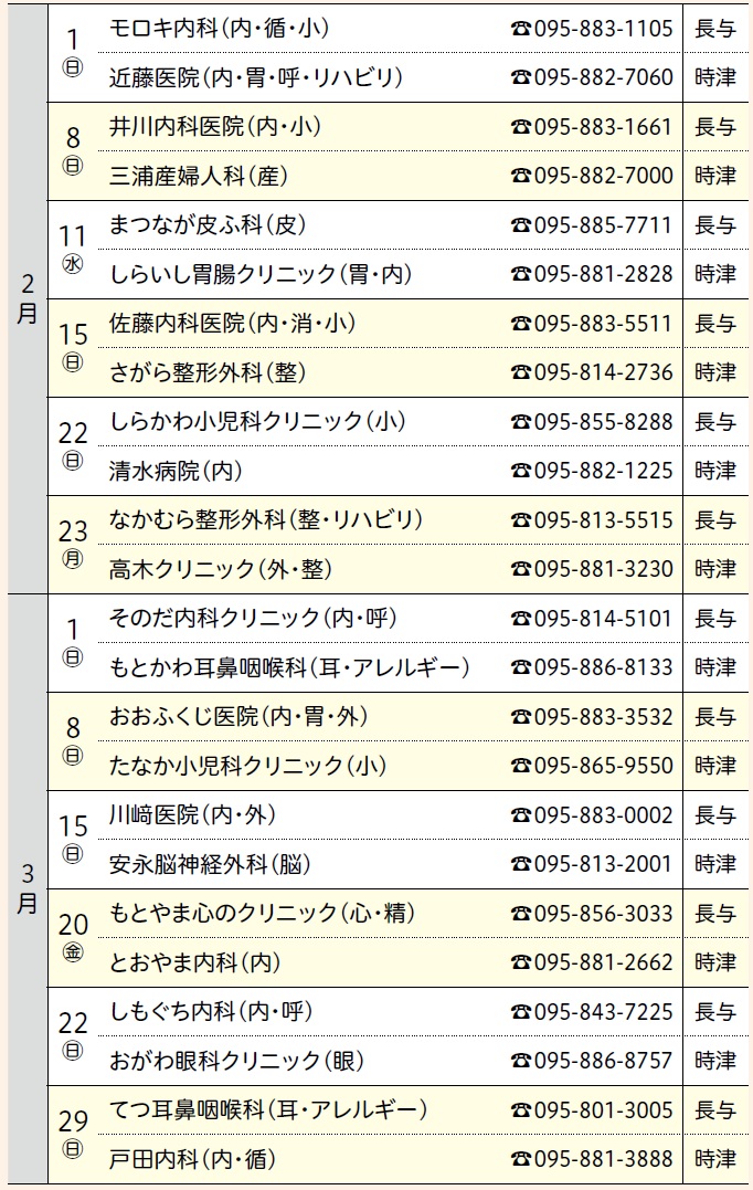 (注)専門外に関しては診療ができない場合があります。当番医は変更することがありますので、当日の新聞や直接医療機関で確認してください。