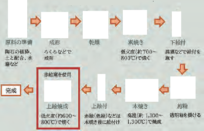 赤絵窯は全国的には色絵窯ともいい、上絵の具を焼き付けて色鮮やかな色絵製品を焼く小型の窯です。今回発見されたこの赤絵窯で長与三彩を焼いていた可能性も指摘されています。また、江戸時代の赤絵窯跡であれば県内では初めての出土事例となり、全国的にも残っている数が少ないため、たいへん貴重なものとなります。