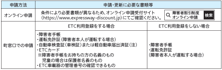 通勤、通学、通院等の日常生活において、有料道路を使用する障害者に対し、有料道路の通行料金の半額が割り引かれます。割引を受けるためには、福祉課での申請もしくはご自身でのオンライン申請が必要です。(更新あり)