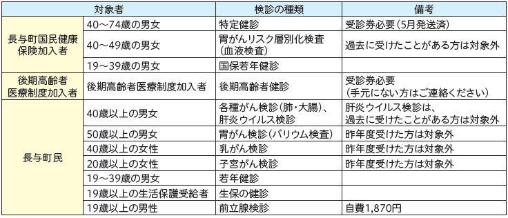 その他:健診は、医療機関での受診も可能です。詳しくは4月に各世帯へ配布している「令和7年度長与町健康診査のお知らせ」をご覧ください。