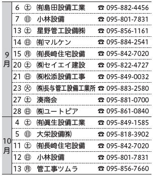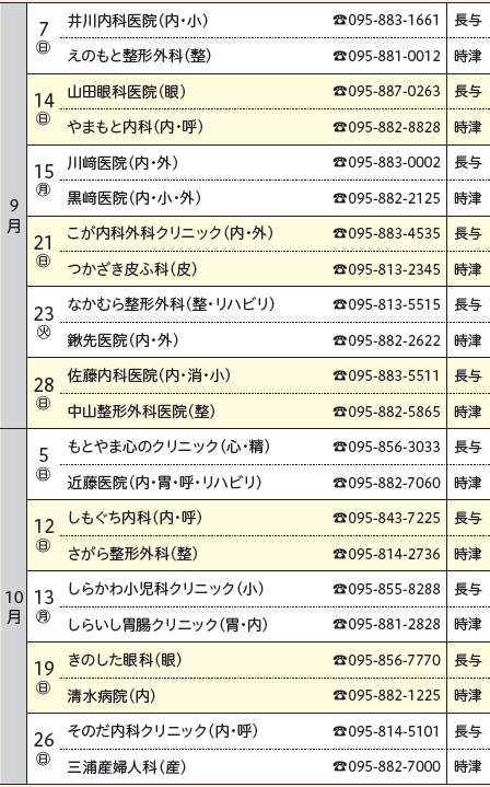 (注)専門外に関しては診療ができない場合があります。当番医は変更することがありますので、当日の新聞や直接医療機関で確認してください。