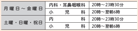 毎日18時~翌朝8時 日曜・祝日は24時間対応
