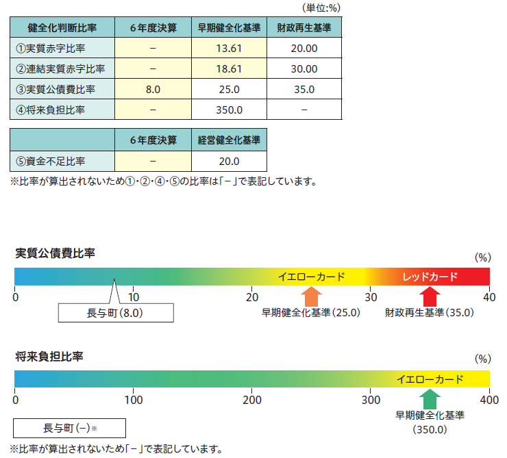 (5)資金不足比率…公営企業会計における資金不足額(赤字額に相当するもの)の事業規模に対する比率本町は水道事業、下水道事業、土地区画整理事業の3会計が対象
