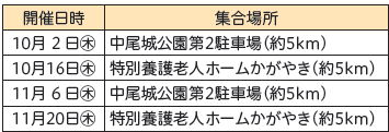 その他:希望者にはポールを無料で貸し出します。雨天時の開催については、お問い合わせください。初めて参加される方には、個別に歩き方講習を行いますので、必ずお電話ください。