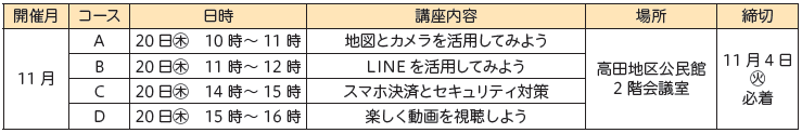 その他:当日はレンタルスマートフォン(iPhone)を貸与して講座を行います。講座ではアプリの使い方を学ぶので、普段iPhone以外を使用されている方もきちんと学ぶことができます。