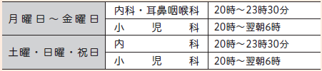 毎日18時~翌朝8時 日曜・祝日は24時間対応