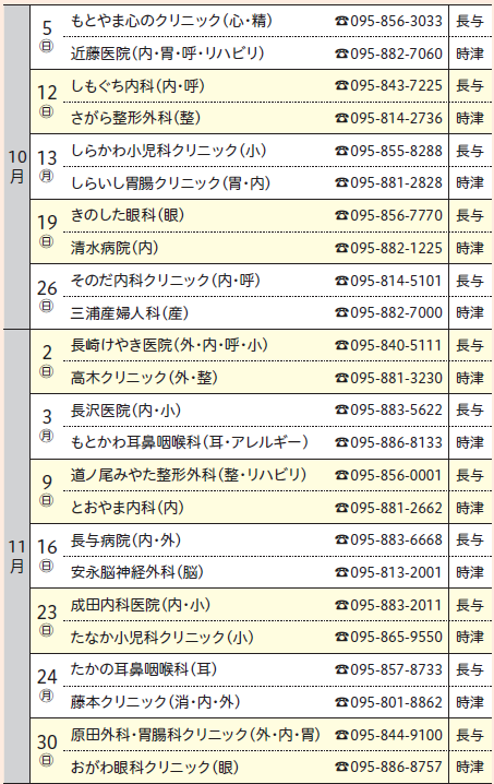 (注)専門外に関しては診療ができない場合があります。当番医は変更することがありますので、当日の新聞や直接医療機関で確認してください。
