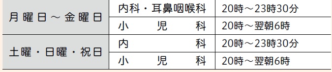 毎日18時~翌朝8時 日曜・祝日は24時間対応