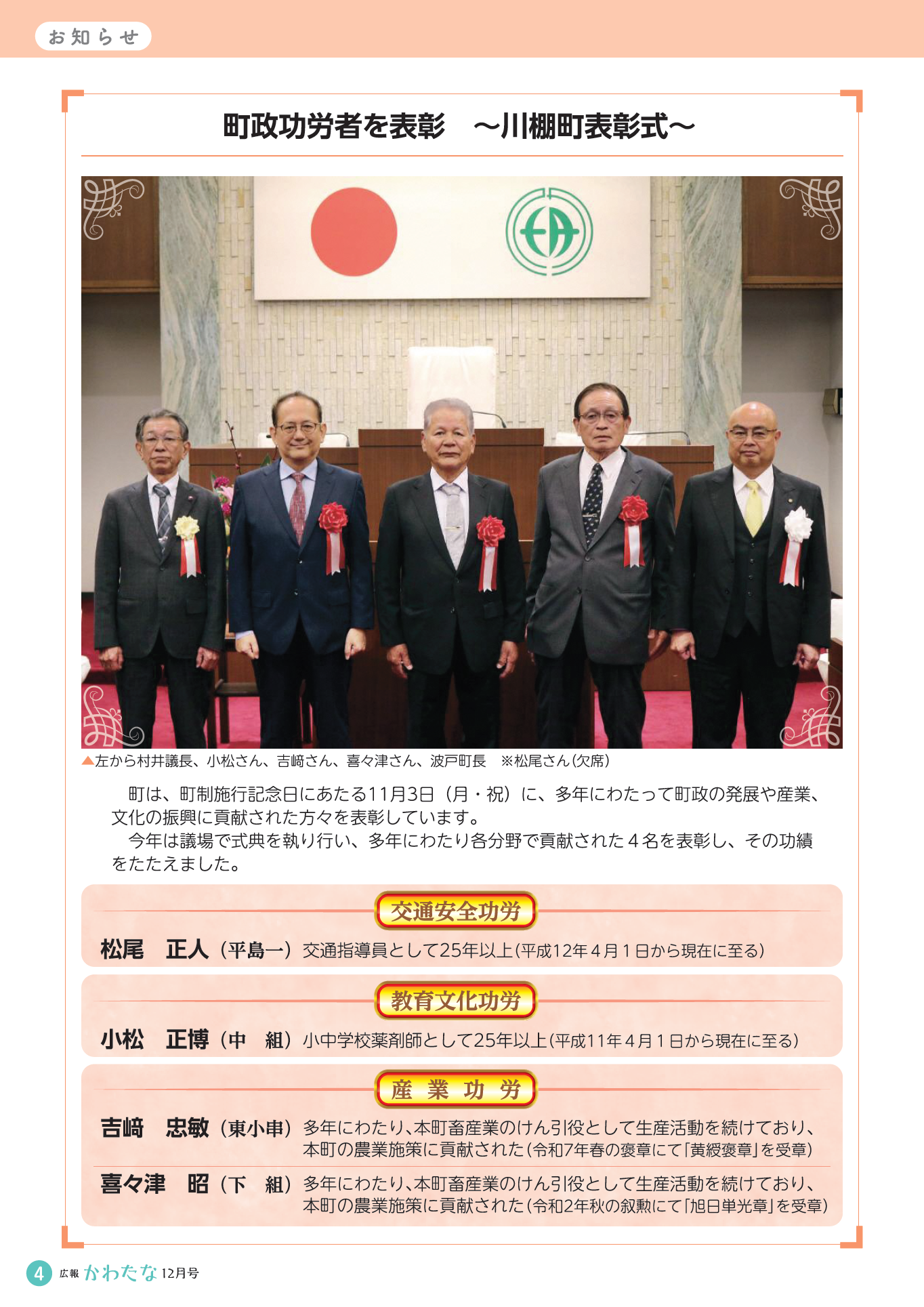 その他 広報かわたな 令和7年12月号 P.4 4/19 前の記事 次の記事 発行日 : 2025年12月01日 自治体名 : 長崎県川棚町 広報紙名 : 広報かわたな 令和7年12月号 Tweet シェアする 広報かわたな 令和7年12月号 P.3 広報かわたな 令和7年12月号 P.5