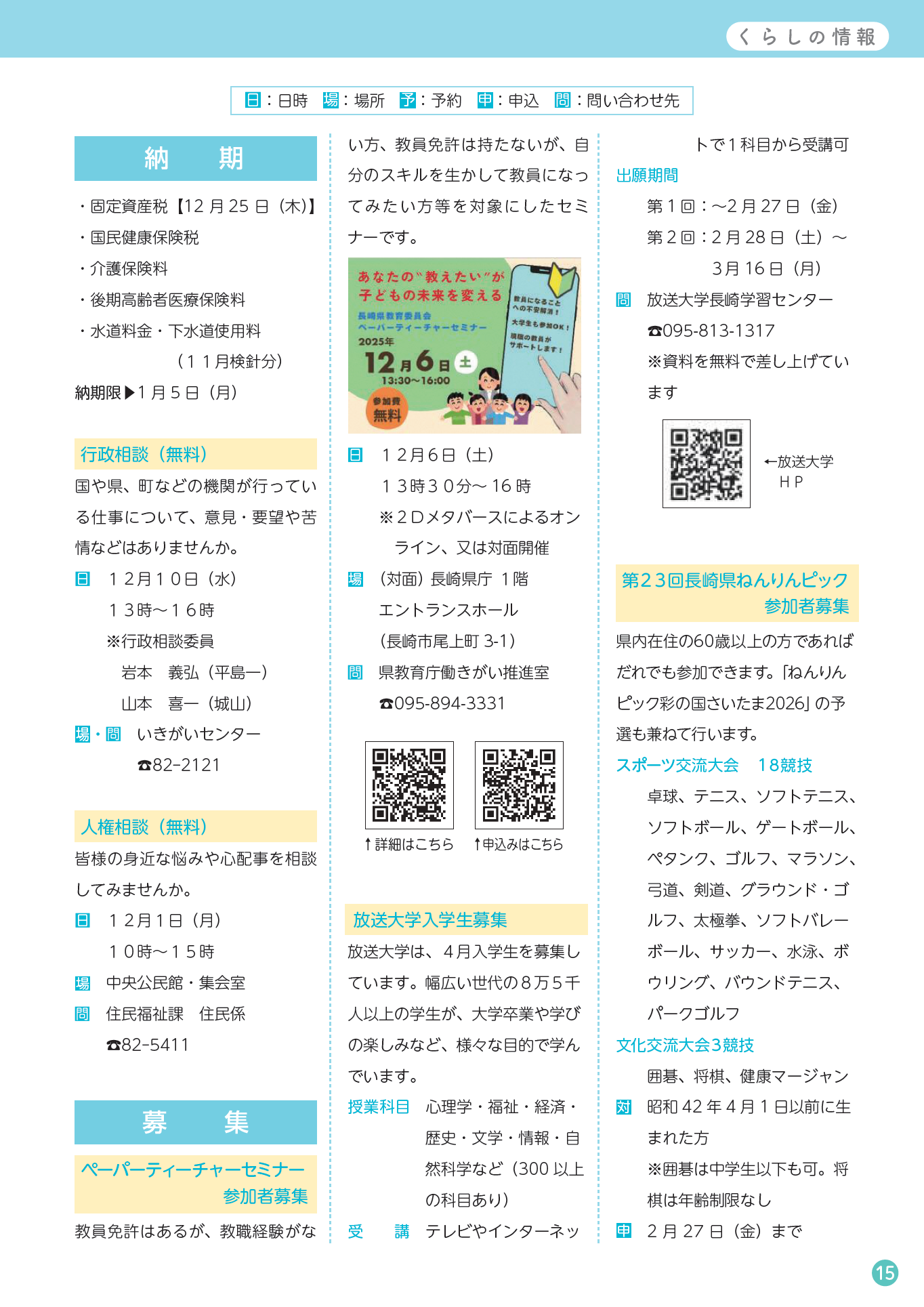 くらし 広報かわたな 令和7年12月号 P.15 15/19 前の記事 次の記事 発行日 : 2025年12月01日 自治体名 : 長崎県川棚町 広報紙名 : 広報かわたな 令和7年12月号 Tweet シェアする 広報かわたな 令和7年12月号 P.14 広報かわたな 令和7年12月号 P.16