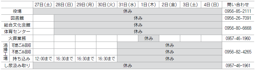 ◇年末年始の業務案内