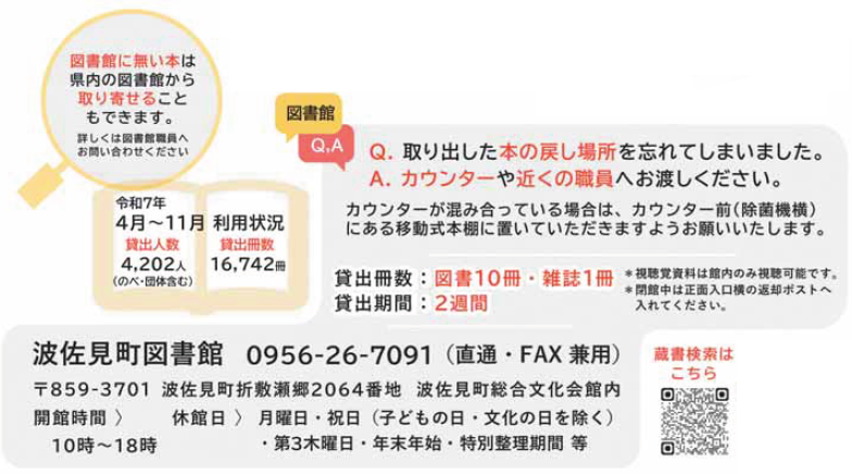 波佐見町図書館では、いろいろなジャンルの本を取り揃えています。