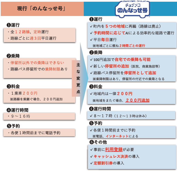 交通空白地域解消を目的に平成24年から運行を開始した「のんなっせ号」について、10月から大幅なリニューアルを行い実証運行を行います。