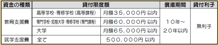 (日本学生支援機構(1種)、長崎県育英会の奨学金、長崎県母子父子寡婦福祉資金等)