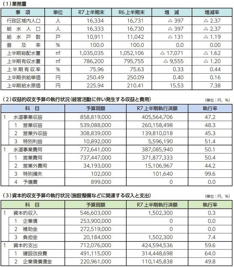 新上五島町水道事業の設置等に関する条例第7条の規定により、令和7年度上半期(令和7年4月から令和7年9月まで)水道事業の業務状況をお知らせします。