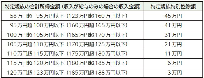 特定親族特別控除が創設され、納税者本人と生計を一にする年齢19歳以上23歳未満の親族等(配偶者及び青色事業専従者等を除く)で、控除対象扶養親族に該当しない方(合計所得金額58万円超123万円以下)がいる場合、所得控除の適用を受けられるようになりました。