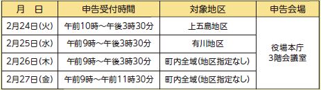 ★「北魚目出張所」において、上記日程以外での申告受付は行いませんのでご注意ください。