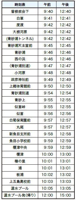 ■10月から奈摩・新魚目方面への送迎バスを運行開始!