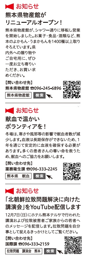 くらし 熊本県からのお知らせ 4/7 前の記事 次の記事 記事を読み上げる 発行日 : 2025年12月18日 自治体名 : 熊本県 広報紙名 : 熊本県広報紙「県からのたより」 令和7年冬号 Tweet シェアする 2025くまもと この1年 熊本県広報課公式インフォメーション