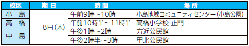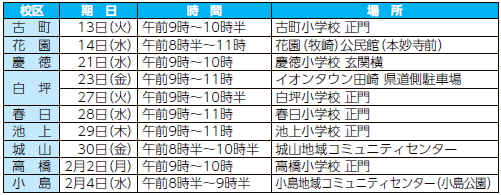 お住まいの校区以外の会場でも受診できます(専用の駐車場はありません)
