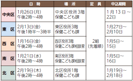 問い合わせ:(各区保健こども課)