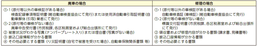 ・被害状況に応じた添付資料(※以下の表のとおり。)