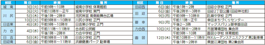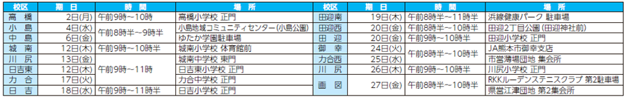 お住まいの校区以外の会場でも受診できます(専用の駐車場はありません)