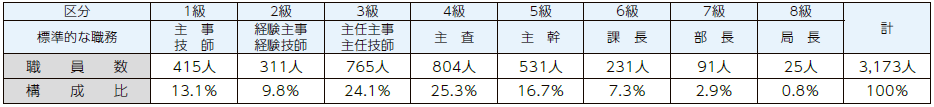 (4)職員(一般行政職)の級別職員数の状況(令和6年4月1日現在)