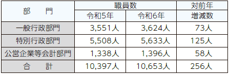 ※一般行政職のほか、税務職、福祉職等を含む全職種区分の職員数を部門別に集計しています。