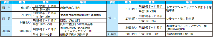 ◆胸部(肺がん・結核)検診車の巡回日程(令和7年10月)