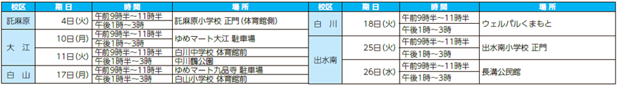 お住まいの校区以外の会場でも受診できます(専用の駐車場はありません)