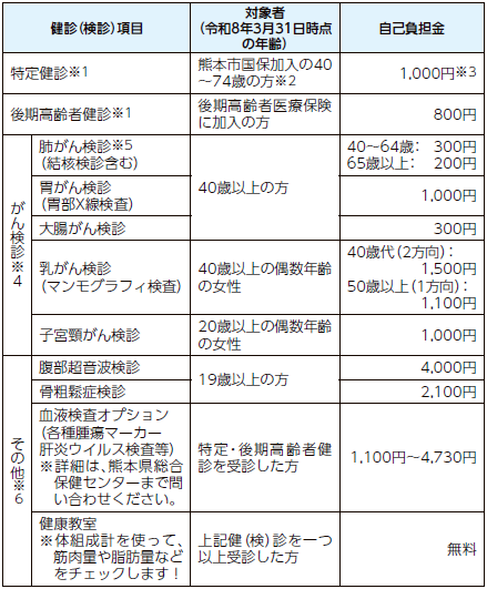 ※4 がん検診については、70歳以上は無料です。また、生活保護および市民税非課税世帯の方は、一定の証明書を提示することにより、自己負担金が免除になります。詳しくは、申し込み時に問い合わせください。