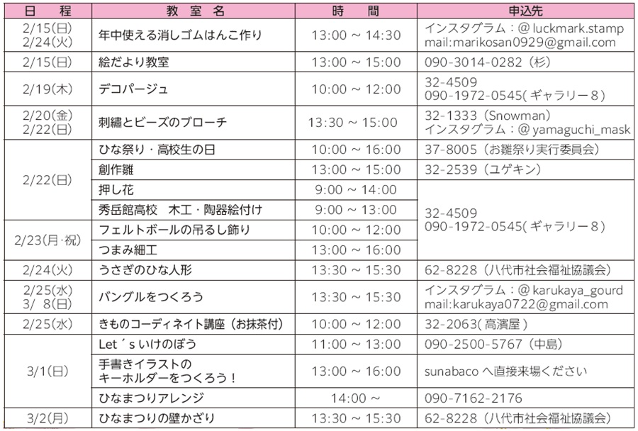 問合せ:城下町「やつしろ」のお雛祭り実行委員会事務局