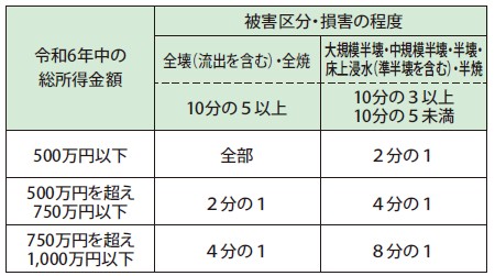 ※損害の程度…り災証明書の被害程度、住宅、家財又はその他の財産の損害額により判定