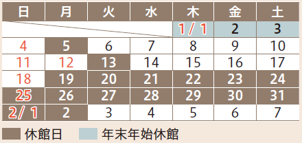 1月19日(月)~2月2日(火)は、特別作業などのため、臨時休館します。