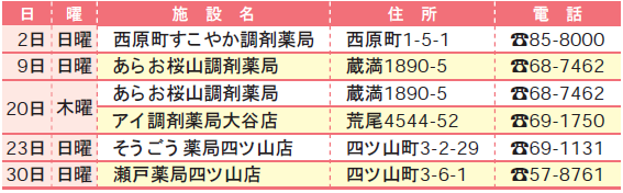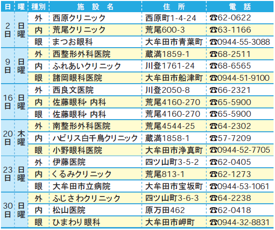 ・気象状況や自然災害などで、当番医が診療できない場合があります。