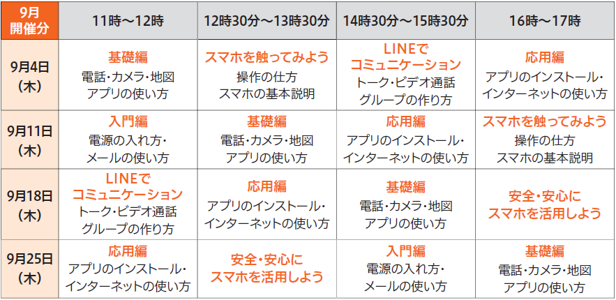 今月はLINE編と防災編を開催します。台風に備えましょう。何度も復習して基本操作をマスターしましょう!